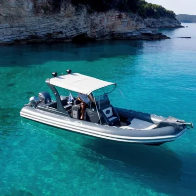 Το φουσκωτό Rib σκάφος Black Swan 9μ. με χωρητικότητα 11 ατόμων και skipper είναι ιδανικό για να εξερευνήσετε τις όμορφες παραλίες των Συβότων και των Παξών. Γνωρίζουμε τις περιοχές που θα σας ενθουσιάσουν καθώς και μπορείτε να απολαύσετε την ιδιωτική παραλία που έχουμε για τους πελάτες μας σε ένα ειδυλλιακό σημείο στο Ιόνιο! Διατίθεται για: πάρτι, ρομαντικό ραντεβού, καταδύσεις, bachelor party, γενέθλια. Η ενοικίαση είναι ιδιωτική και ο προορισμός είναι η επιλογή σας. Μπορούμε να οργανώσουμε για εσάς μια ολοκληρωμένη βραδιά με ποτό, φαγητό, dj, πετσέτες κ.λπ.